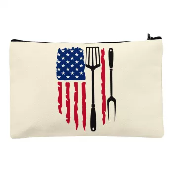 BBQ American Flag Travel Makeup Bag – Barbeque Party Accessory Pouch