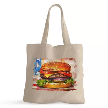 Burger Art 100% Cotton Tote Bag – American Food Grocery Shopping Cloth Bag – Hamburger Lover Eco-friendly Tote Bag