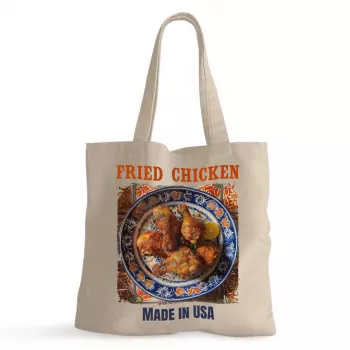 Fried Chicken 100% Cotton Tote Bag – Retro Design Grocery Shopping Cloth Bag – Chicken Lover Gift Eco-friendly Tote Bag