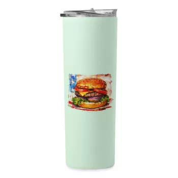 Burger Art 20oz Skinny Tumbler – American Food Travel Mug – Hamburger Lover Stainless Steel Tumbler
