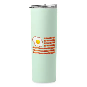 Bacon & Eggs USA Flag 20oz Skinny Tumbler – American Breakfast Travel Mug – Funny Food Stainless Steel Tumbler