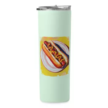 Hot Dog Graphic 20oz Skinny Tumbler – Hot Dog Eating Contest Travel Mug – Vintage Hot Dog Stainless Steel Tumbler