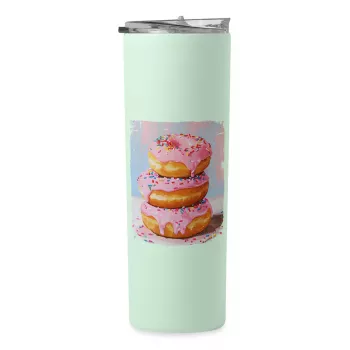 Pink Donuts 20oz Skinny Tumbler – Retro Sweets Travel Mug – Aesthetic Art Stainless Steel Tumbler