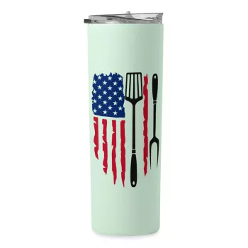 BBQ American Flag 20oz Skinny Tumbler – Barbeque Party Travel Mug – Fun BBQ Stainless Steel Tumbler