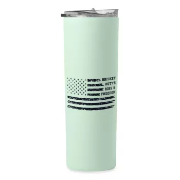 Brisket Butts Ribs and Freedom 20oz Skinny Tumbler – Funny Barbeque Travel Mug – BBQ Gift Stainless Steel Tumbler