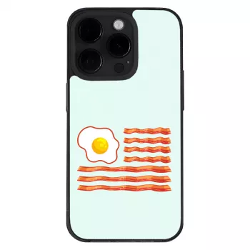 Bacon & Eggs USA Flag iPhone 16/15/14/13 Case – Funny Food Phone Case for iPhone – American Breakfast Protective Phone Case