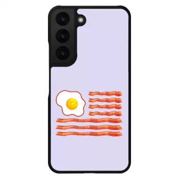 Bacon & Eggs USA Flag Samsung Galaxy S24/S23/S22/S21 Case – American Breakfast Protective Phone Case – Funny Food Samsung Case